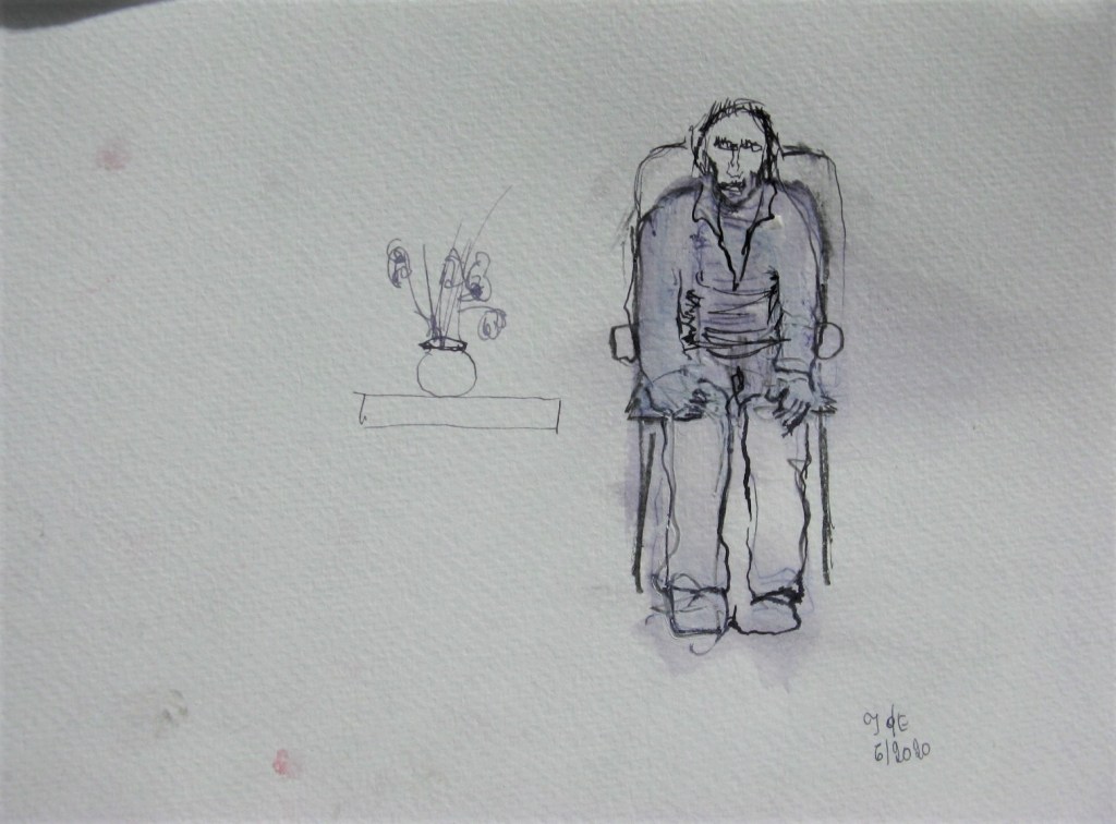 Au fauteuil avec les fleurs-Encre-2020