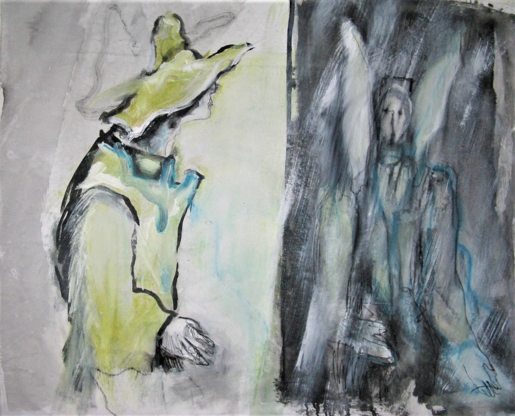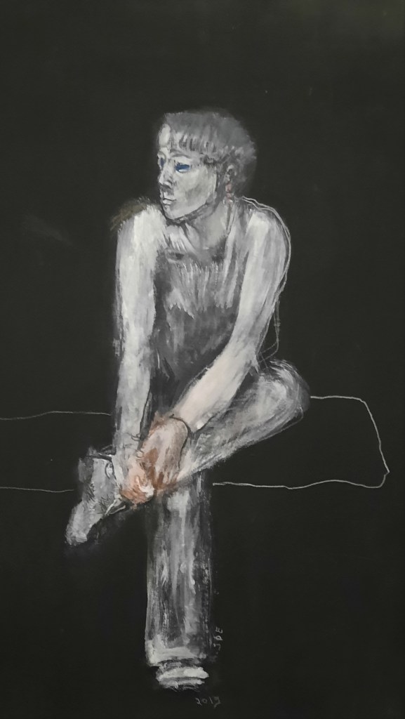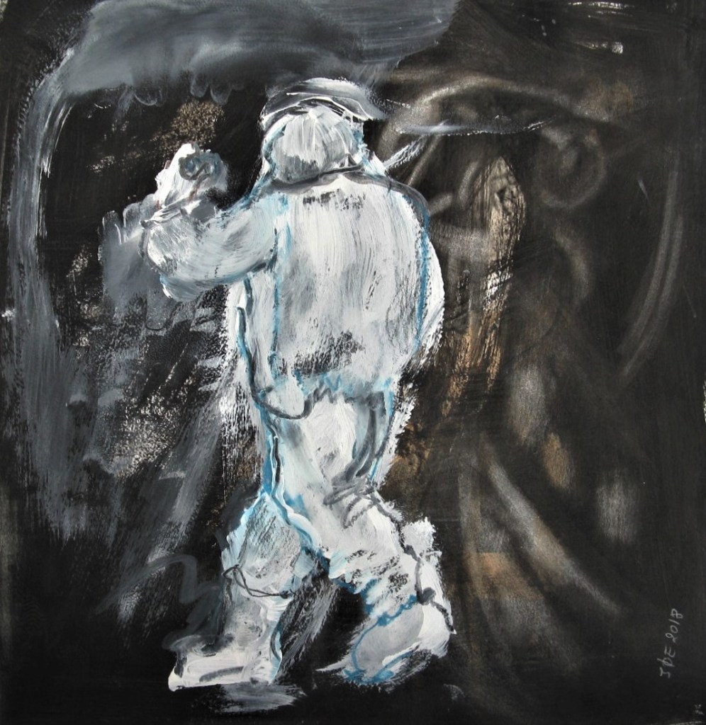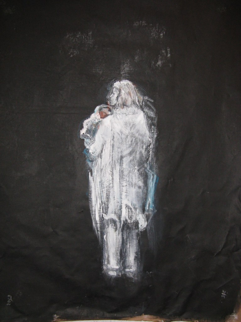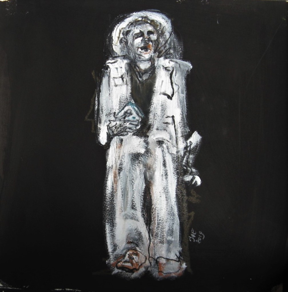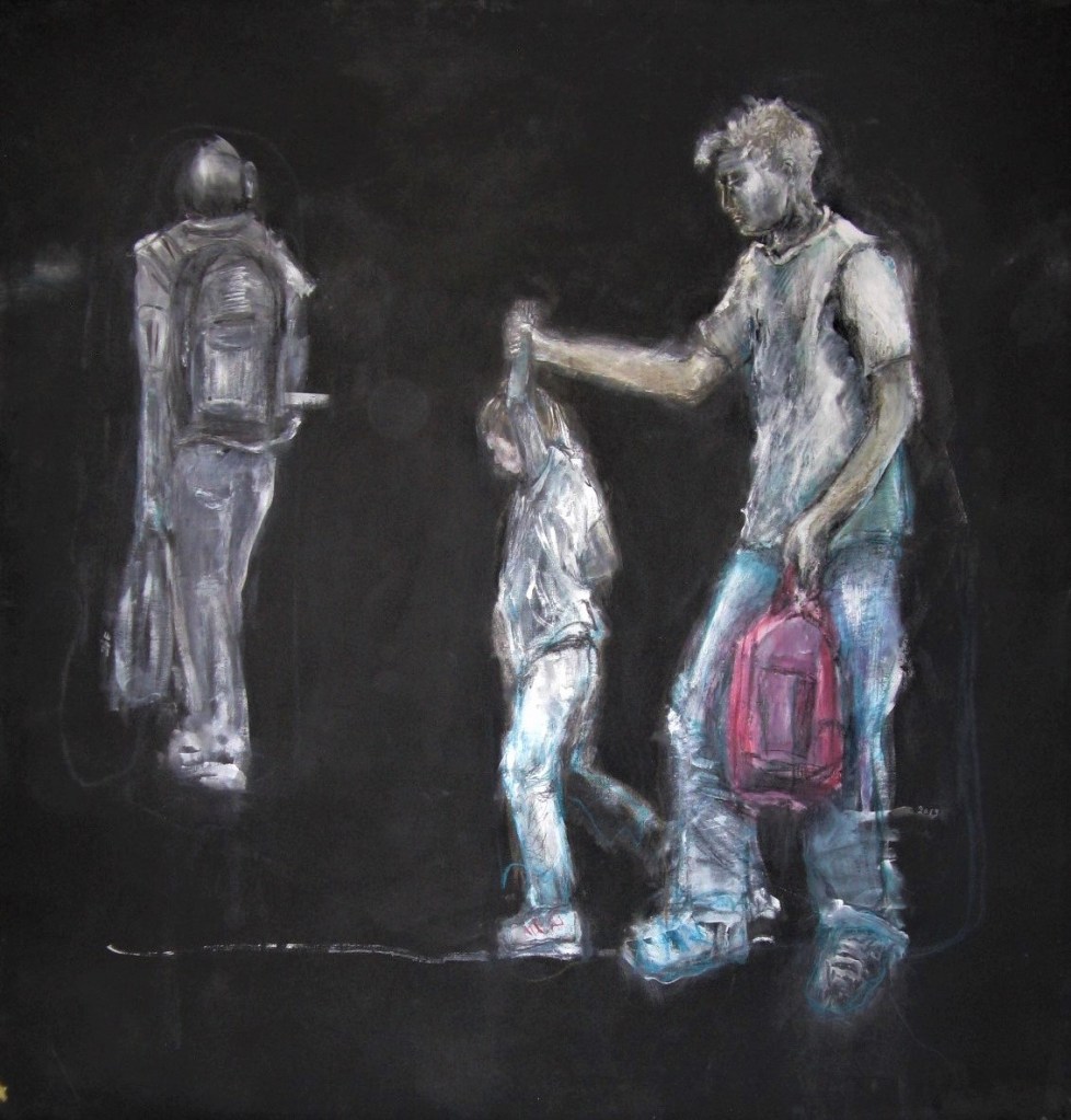 Il me fallait parler d’eux et d’elles. D’un point de vue pictural, cette série s’inscrit dans une recherche sur fond noir » Oeuvres au noir » ( voir plus loin) produite alors essentiellement sur papier 50×50 et entamée début 2019.