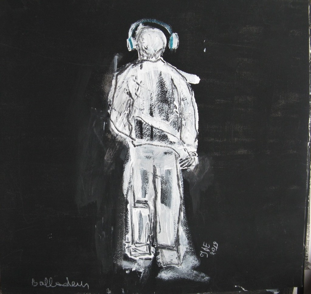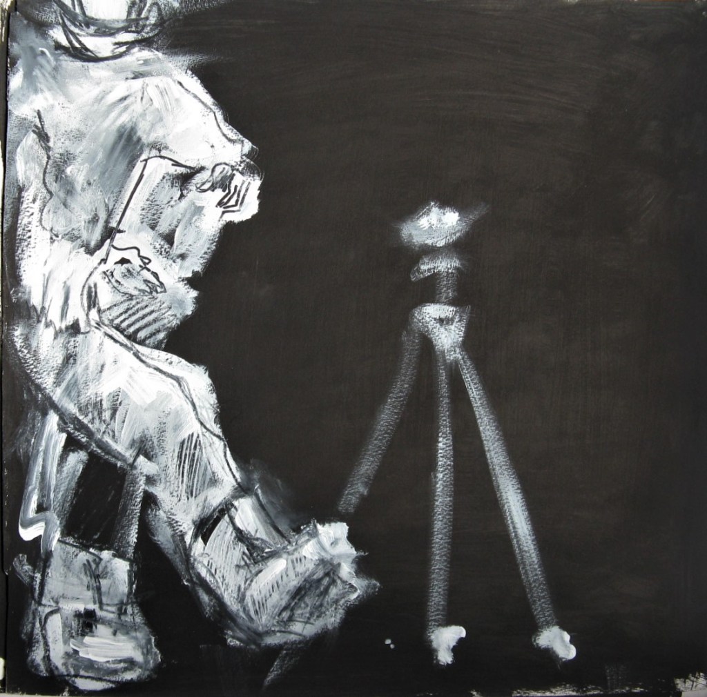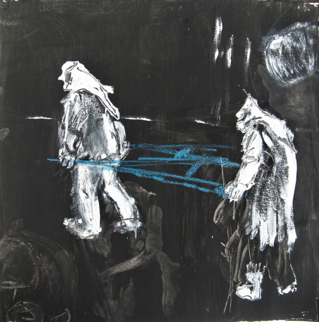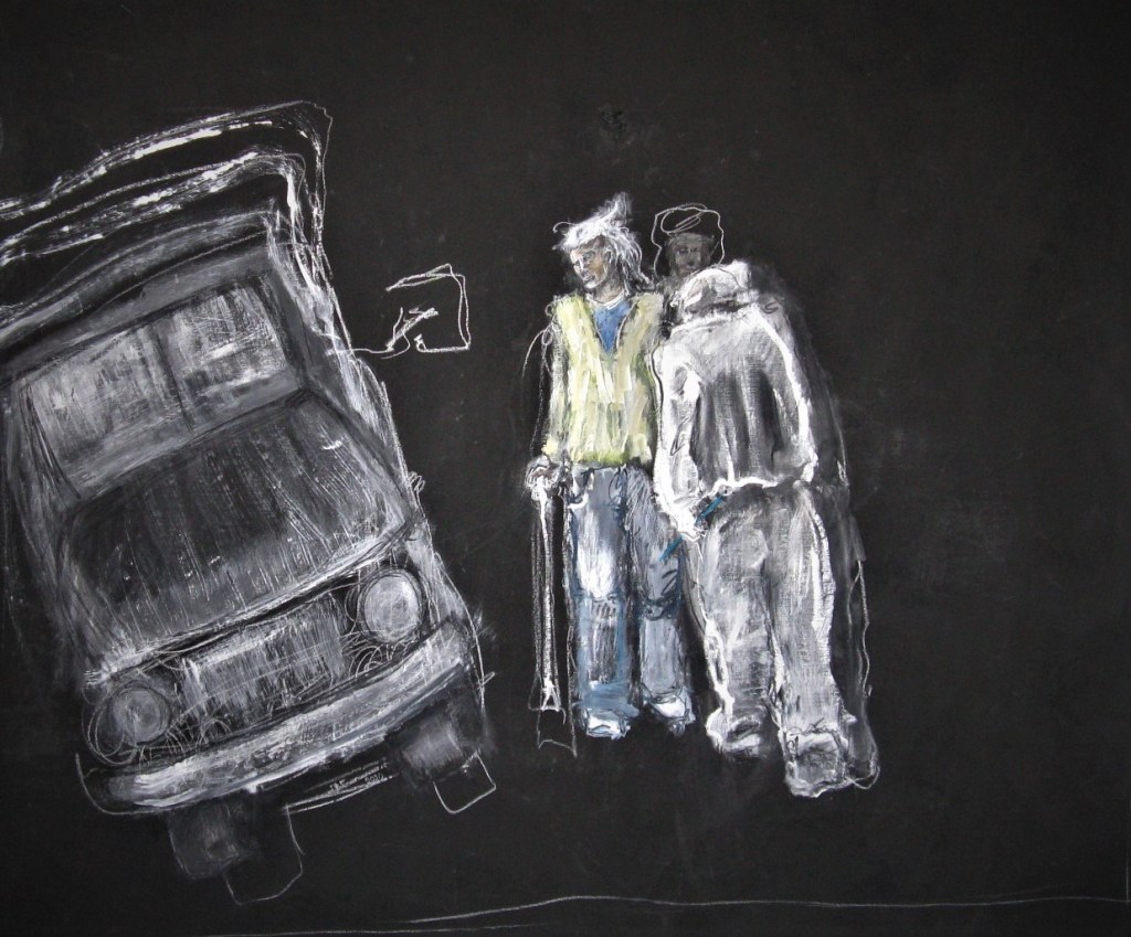 Le thème se situe en parallèle et consécutivement à la série » La route ». Un fond noir, et des personnes assises. Le format est le plus souvent 50×50 et le support le papier.