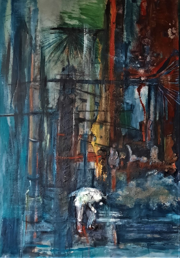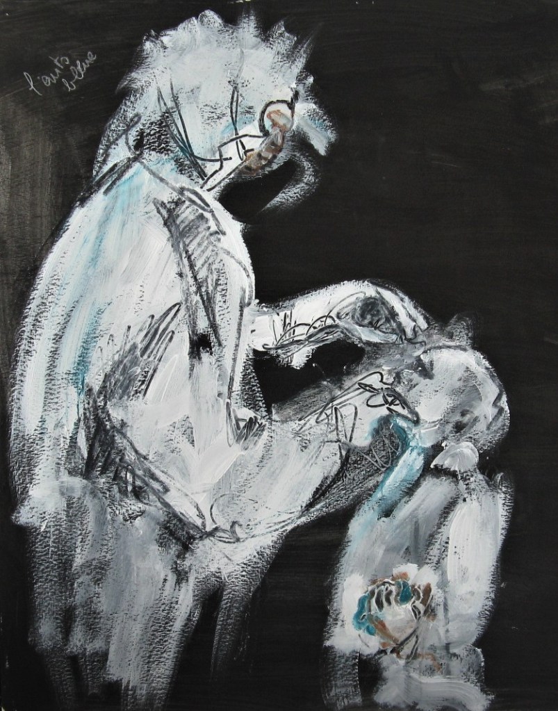 La peinture est tout comme le dessin et la gravure le lieu de recherche d’expression et aussi de techniques. Car la technique détermine l’expression et inversément l’expression sollicite des techniques différentes selon ce qui est recherché. Ainsi l’acrylique peut se mettre au service d’une expression rapide et spontanée, alors que l’huile soutient un travail sur le plus long terme, avec des retours possibles .
